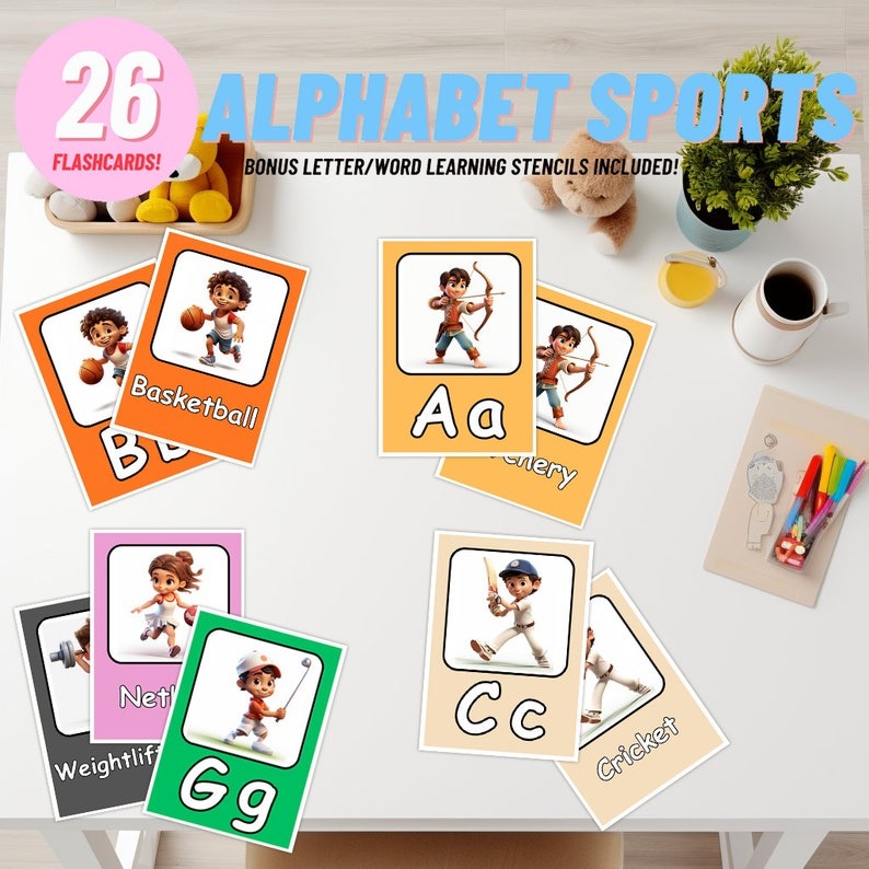 Introducing our 'Alphabet Sports' Flash Card Series, a delightful educational tool that combines fun and learning for your little ones! Designed with love and creativity, these flash cards are perfect for introducing your child to the wonders of the alphabet while exploring the captivating world of sports.